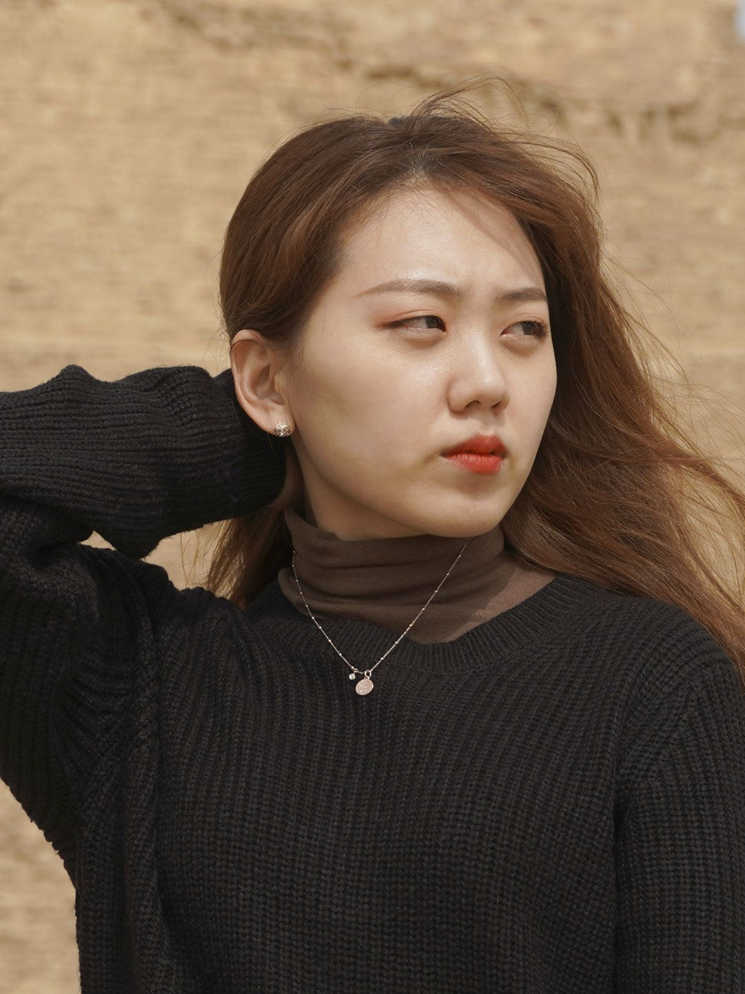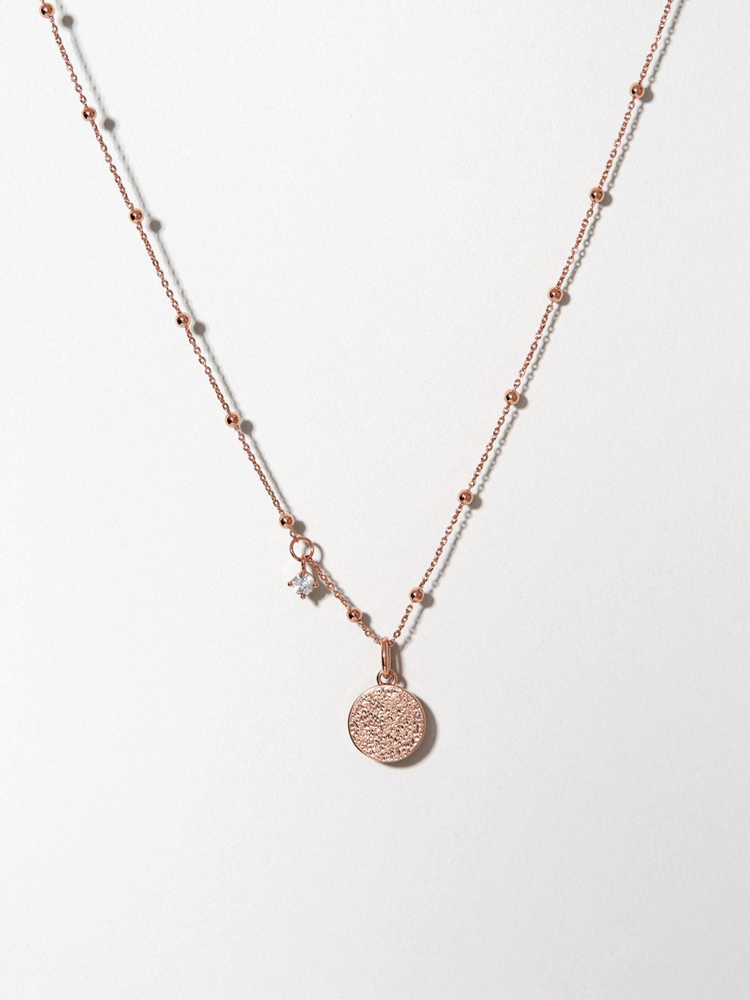 Designed by YouTube explorer Sophie Kim, this delicate rose gold coin necklace features an engraved message in Arabic that stands for "honey" —10% of each sale goes to CARE. The coin pendant has an irregular textured look on one side and Sophie’s message to her beloved audience on the other. Both the ball chain necklace and the pendant are dipped in 14k rose gold to offer this coin necklace a sleek, luscious look.