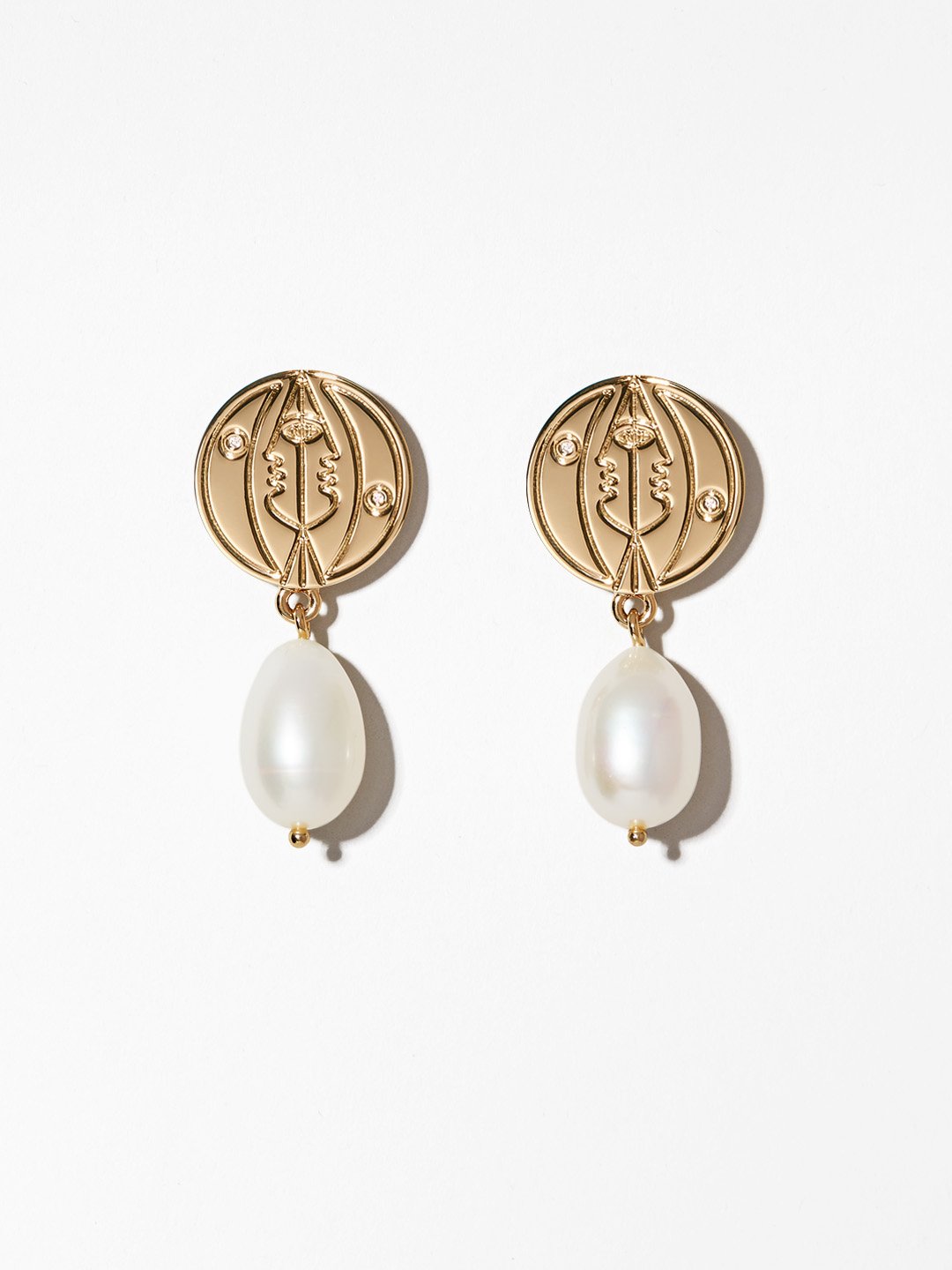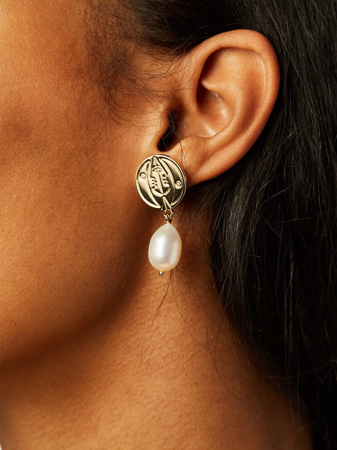 These astro pearl earrings with intertwined sun and moon designs are the perfect addition to your day- pair these with the matching astro coin necklace for a full celestial statement, no matter your mood! All net proceeds go to organizations that support the Black Lives Matter movement. With a thick 14k gold layer, luscious natural pearls and shimmering cubic zirconia, these astro pearl earrings are all you need to elevate your look. Wear them with the complementary astro coin necklace to create a classy celestial theme.