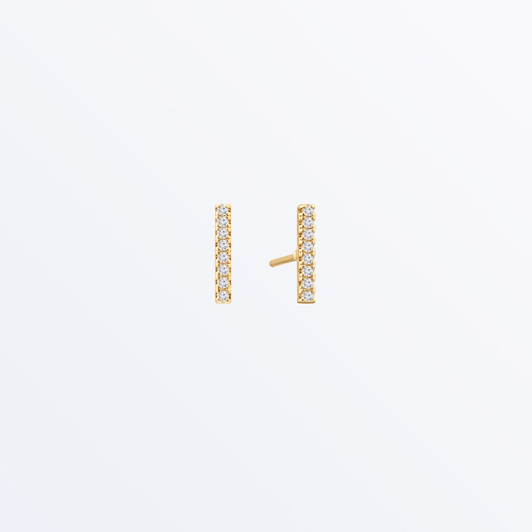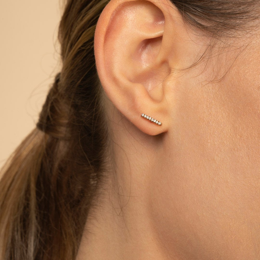 Get the dainty yet minimalist look with these gold bar earrings featuring glowing cubic zirconia gems set in a timeless channel setting. Carefully handcrafted and dipped in 14k gold, these bar earrings perfectly complement an office look. Make sure to get these limited-edition gold bar studs before they are out of stock.
